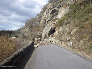 Alleyras - Saint-Privat d’Allier : la RD 40 coupée par un éboulement de rochers [MAJ : Réouverture le 7 Mai]