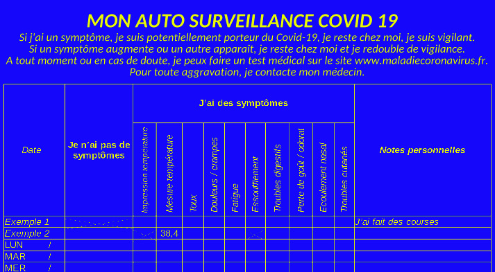 Nous vous offrons notre feuille d’auto surveillance des signes précurseurs de la maladie. A imprimer largement et remplir au quotidien pour les prévoyants. Elle restera...Lire la suite →
