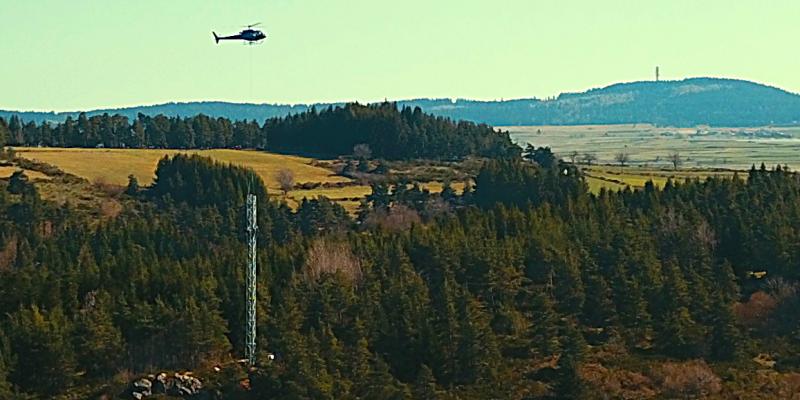 La pose par hélicoptère du pylône de téléphonie mobile d’Alleyras